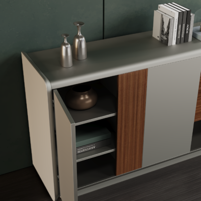 Transformez votre intérieur avec ce buffet au design épuré, pensé pour allier esthétique contemporaine et praticité intelligente. Sa façade en gris mat contrastée par une lame verticale en bois naturel évoque une harmonie subtile entre modernité et chaleur organique.